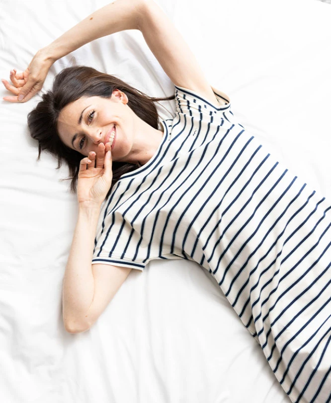 Avec son motif rayé bicolore et ses finitions contrastées, la chemise de nuit YSOMNIA allie élégance et bien-être pour des moments de détente absolus.