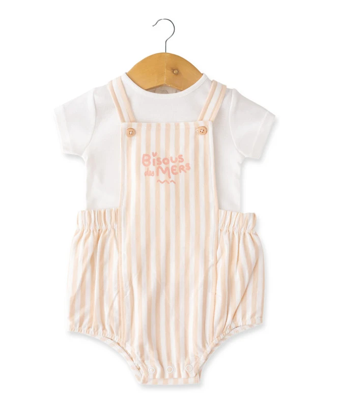 Ensemble Salopette + T-shirt Bébé Rayé Pêche -Vetements Simples Magasin prod 9830 salopette courte haut naturel peche efir 666x812 fc7ea0111e0b