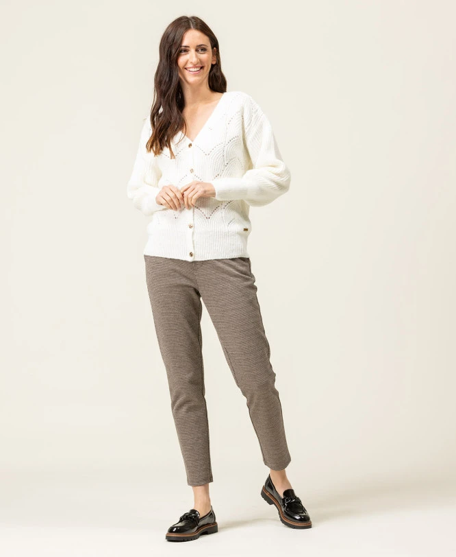 L’indispensable cardigan beige clair que l’on combinera à une robe, un denim ou une jupe imprimée. C’est l’indispensable de votre dressing en toutes saisons !