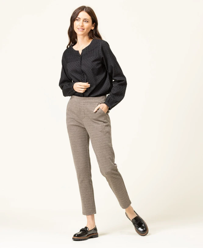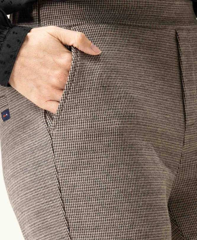Classique mais toujours chic, le pantalon 7/8ème à carreaux pied de poule complètera élégamment les tenues business chic ou les événements plus chics des cérémonies d’automne-hiver.