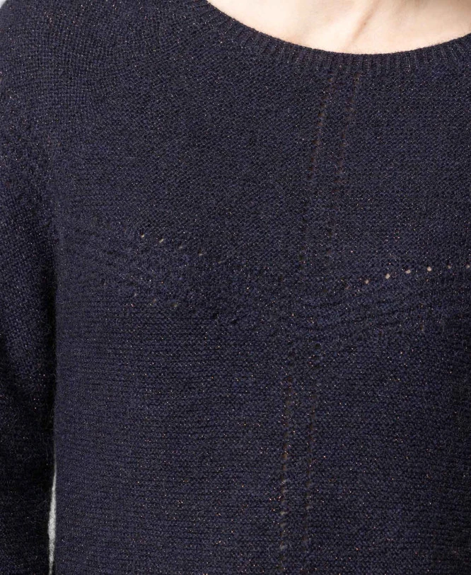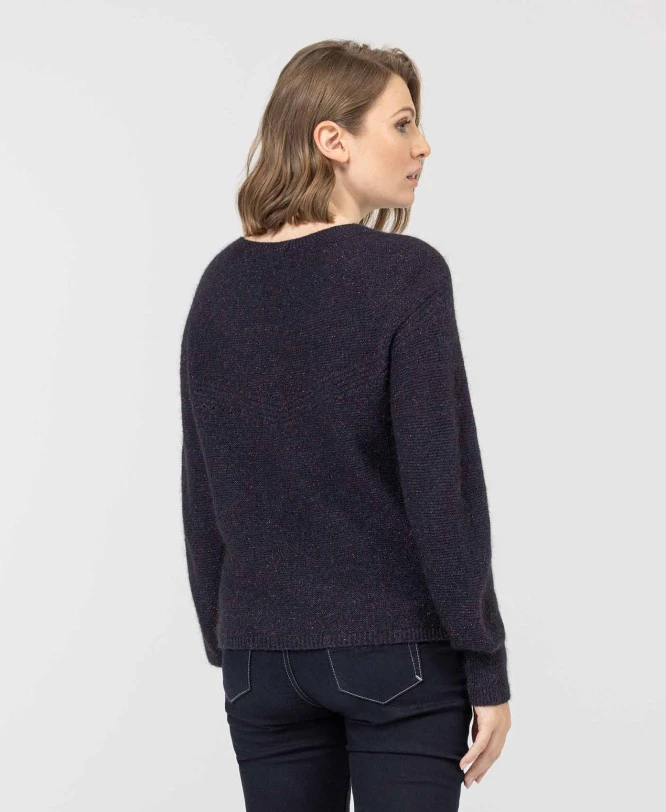 Que vous préfériez un look décontracté ou plus élégant, le pull femme Kaliso est l’allié parfait pour cet hiver. Son design ajouré à l’avant, ses finitions en fibres métallisées et sa coupe moderne lui confèrent une allure raffinée, tout en vous assurant une douceur et un confort inégalables. Fabriqué en France à Saint-Malo. Disponible en coloris indigo et beige.