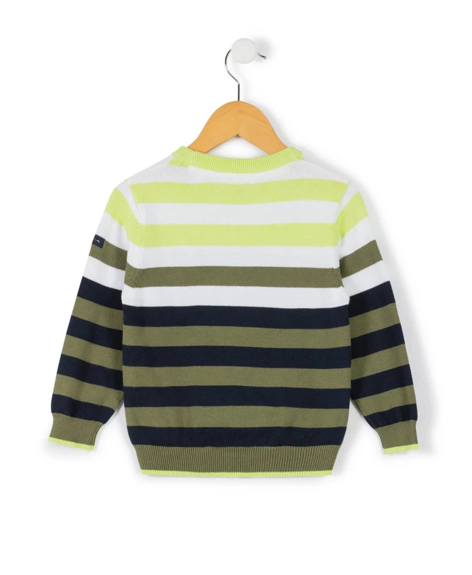 On aime ce pull marin dans un camaieu de verts idéal pour la mi-saison !