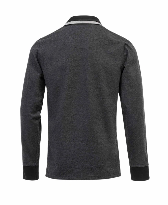 Sweat noir chiné pour homme. Col polo. Visuel exclusif. Ecusson sur la manche gauche et écussion sur le torse coté coeur. Jersey lourd 60% coton 40% polyester 310 gsm. Ce polo bien chaud vous permettra de passer l’hiver sereinement.