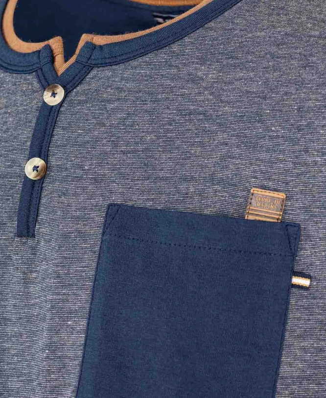 - Jeu de contraste aux épaules, à la poche poitrine et aux bas manches