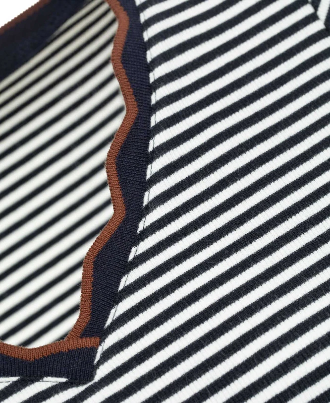 - Bord côte fantaisie bicolore à l’encolure et aux bas de manches